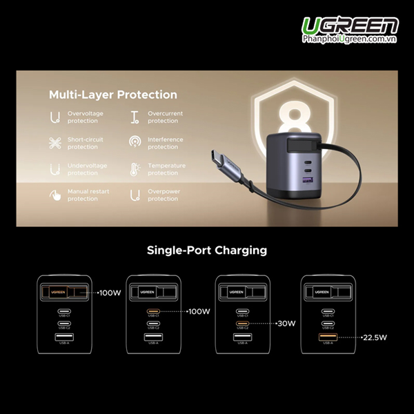 Trong kỷ nguyên công nghệ di động, nhu cầu sạc nhanh, công suất cao và an toàn ngày càng được người dùng quan tâm. Với Sạc điện thoại GaN 100W Ugreen 65827 X616, bạn không chỉ có được tốc độ sạc ấn tượng, mà còn là trải nghiệm tiện lợi nhờ thiết kế tích hợp dây rút USB-C cùng 3 cổng sạc thông minh (2 USB-C + 1 USB-A). Đây chính là phụ kiện lý tưởng cho người dùng hiện đại – nhỏ gọn, mạnh mẽ và tinh tế trong từng chi tiết.