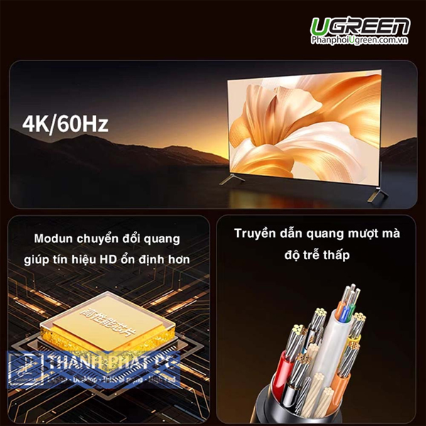 Tính năng Cáp HDMI 2.0 sợi quang AOC dài 20M hỗ trợ 4K@60Hz Ugreen 45505