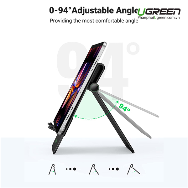 - Đa dạng góc điều chỉnh: Tận hưởng cảm giác thoải mái: Giá đỡ máy tính bảng UGREEN LP406 được thiết kế với nhiều góc điều chỉnh khác nhau, giúp bạn tạo ra góc đặt lý tưởng cho việc đọc sách, xem video, ghi âm hay duyệt web. Bạn có thể tùy chỉnh góc độ để tận hưởng trải nghiệm tốt nhất khi sử dụng máy tính bảng của mình, cũng như thực hiện cuộc gọi FaceTime.