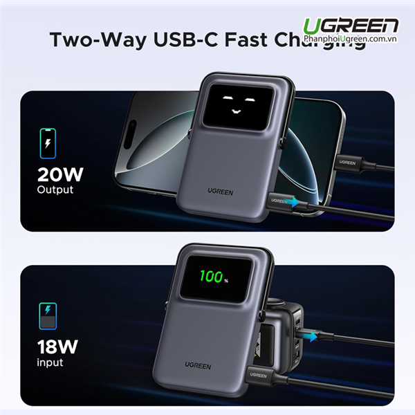 Pin sạc dự phòng không dây từ tính 5000mAh Ugreen UNO 35605B sạc nhanh PD 20W Màn LED Robot là một lựa chọn hoàn hảo cho những ai cần một nguồn năng lượng di động mạnh mẽ, nhỏ gọn và tiện lợi.